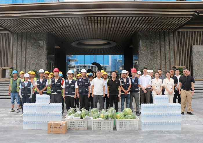 慰問組一行深入施工現(xiàn)場,為奮戰(zhàn)在高溫下的一線建設(shè)者送去了礦泉水、藿香正氣液等防暑降溫物資,向他們致以誠摯的問候和衷心的感謝,并詳細詢問了大家的工作生活狀況和防暑措施落實情況,反復(fù)叮囑大家要勞逸結(jié)合,務(wù)必把身體健康和生命安全放在首位,科學(xué)合理安排作息時間,嚴(yán)格落實各項防暑降溫措施,確保平安度夏。